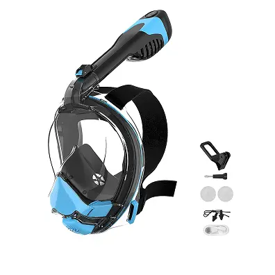 FK005 electric snorkel mask features a patented electric-assisted breathing system. Up to 600% better work of breathing than standard mounted snorkel designs. Powered by an 8,000 RPM micro-fan, it provides continuous airflow to reduce breathing resistance and CO₂ buildup, keeping you comfortable during long snorkel sessions.